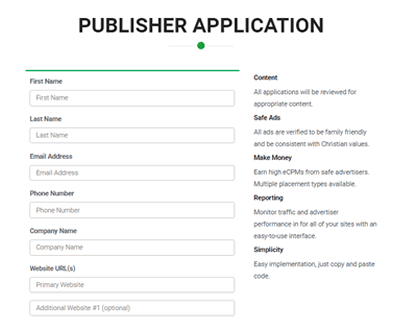 ChristianAdNet makes it easy for websites to increase their online advertising revenue and protect the image and integrity of their site by serving ads appropriate to Christian and family-conscious audiences.